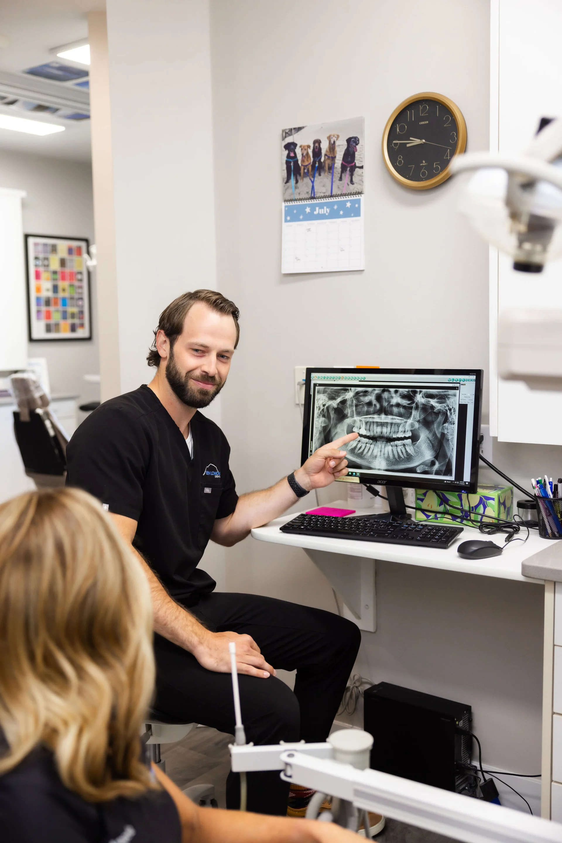 A dental implant is a titanium-based screw that is surgically inserted into the jaw bone. Once the titanium bonds with the jaw bone, we will attach a porcelain crown to the screw, providing you with a new tooth that restores your smile.